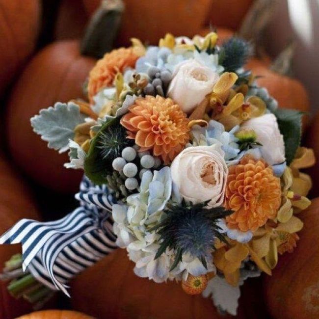What kind of flowers are you oct brides using since my color scheme is an array for purples and silver accents im trying to find the prettiest cheapest options any suggestions