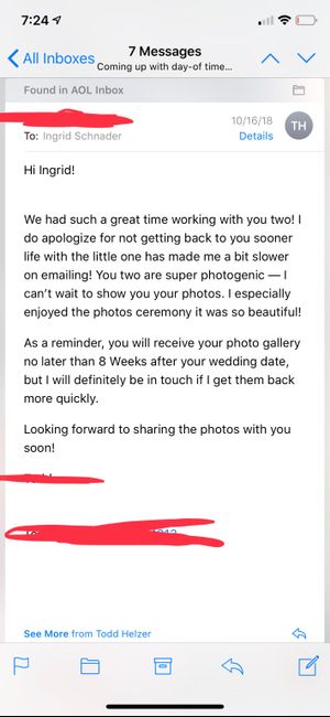 Hi y’all! My photographer said it would take 8 weeks to get my photos back, and it has been such an agonizing wait... but I finally made it to the 8 week mark! Today marks 8 weeks since the best day ever (Sept. 29). Except... I haven’t heard from my...