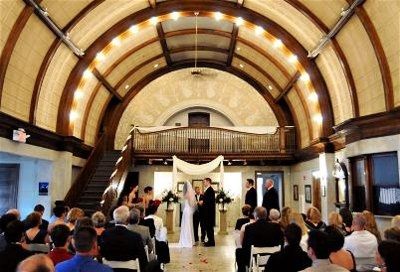 Here are 3 pictures of the train station i am getting married in: 1. looking down from stairs 2. the room empty looking at stairs 3. set up as a wedding (the 2 columns at the alter are part of my package)...... I used to think I liked the fabric on...