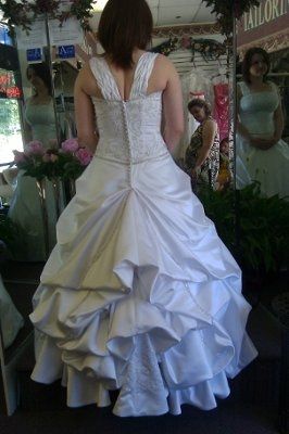 I went for my dress fitting on Saturday and when I put it on it was TOO small. Like barely zip it up kind of small. I am well endowed in the chest, I'm talking 38DDD....while I wear size 9 jeans. I bought a size 16 wedding dress to be able to fit at...