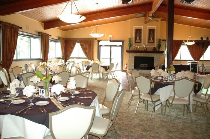 So, this is part of our reception venue, standing in the middle of the room...depending on the final guest count, the head table will either be in front of the windows on the left OR in front of the fireplace. I don't mind the fireplace, but I'm not...