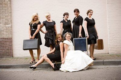 Long story short, I found a woman on Craigslist who is selling all of her wedding decor for cheap. It's all in deep red roses with some white roses. So I had thought I would just have my 3 bridesmaids pick a black dress and we would do cute jewelry...
