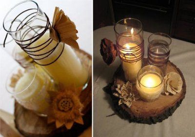 Last night FH was chopping a TON of wood over at his sister's house when I had the BRILLIANT idea to have him make the little circles of wood to put centerpieces on like the picture I attached. Here's my wonderful (and oh so handsome!) FH cutting our...