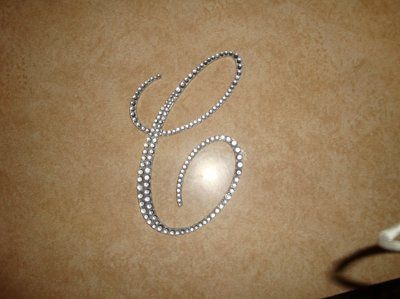 FINISHED! Got the letter from www.craftcuts.com for $9.35..shipped Used metalic silver spray paint that my mom had in the basement. Rhinestones were from Michaels..50% off..making them $1.58 And the superglue (gel kind) was $1.79.
