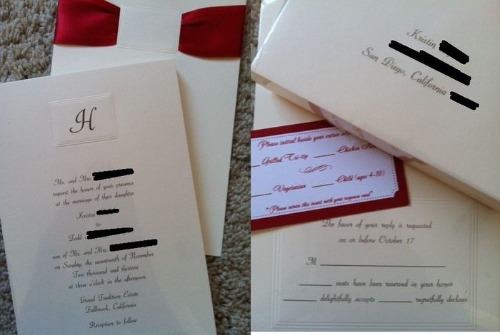 Am I missing anything? Outer envelope Invititation Vellum layer (no inner envelope) RSVP card RSVP envelope Direction card (venue) Direction card (hotel)