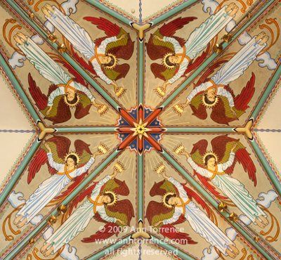 We're having a friend design the invitations using some of the decorative elements from the church where we're getting married. The first pic is the church itself--highly ornamented and colorful. The second pic is of the angels that are on the...
