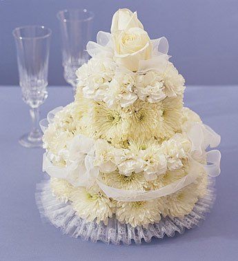 So the wedding cake, in my view, is really more decoration than anything else. So, what if I substituted a decoration that looks like a wedding cake and served a much more practical sheet cake instead? That way I could DIY to my little heart's...