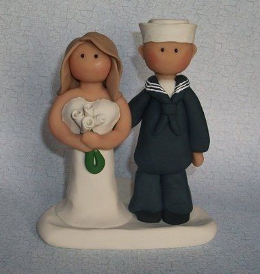My fiance is in the Navy, and he'll be wearing his dress whites at our wedding. I'm having a really hard time finding cake toppers that don't have the groom in a tux, and that aren't unreasonably priced. I also like the "sailor kiss" cake toppers but...