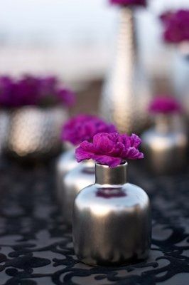 I have been scouring high and low for centerpiece ideas for our colors. We've decided to do a cream, heather gray, and eggplant with little pops of green (think calla lily stems). I'm having the hardest time finding ideas for a possible DIY/cheap...