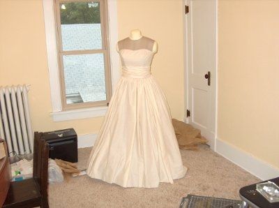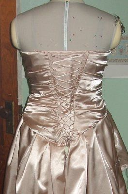 Here is my dress as it looks right now. The trims and finishing details are still pinned, so excuse me for that. But it's getting closer and I like it more everyday--my question is this. You can see how the back makes a nice V shape on the dress...