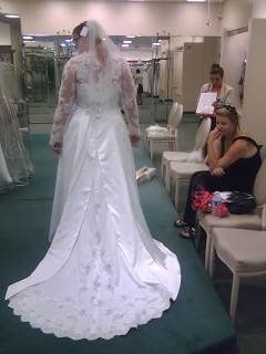I fell in love. My mom wants me to try a few more things on before I make a purchase but I love this dress so very much. Sorry the pictures are kind of small, I took them with my cell phone. My finance doesn't even know I went! He is out of town for...