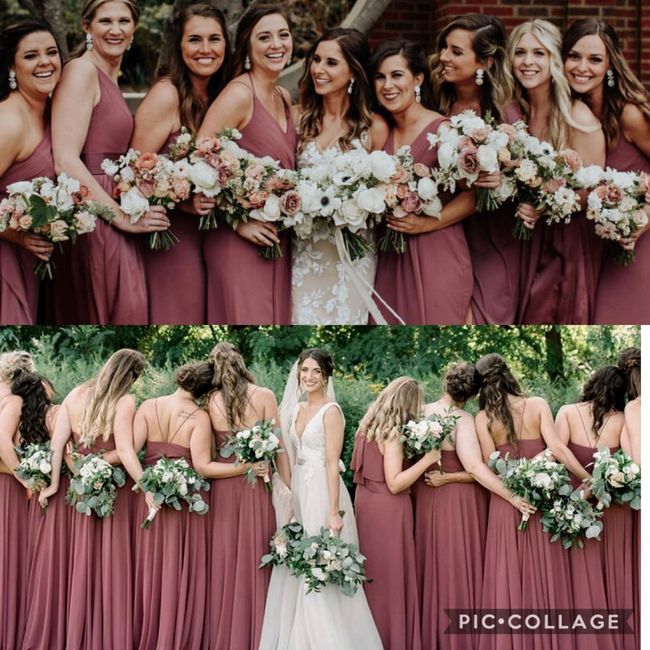 2493 days agoThis is the color my bridesmaids will be wearing but I need to decide on my florals should I tie in the color scheme or stick with white and greenery?