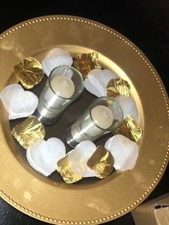 Goodmorning everyone! What did you guys choose to have as your centerpieces? For our minimony we did something simple, we did mirrors on top of a charger plate. On the mirrors there were votive candles and rose petals in our colors. (I attached our...