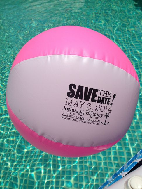 Okay, so I googled ideas for Save the Dates and came across pretty much the neatest idea ever... It's an invite...on a BEACH BALL! and, allows for such cute puns like "save the date to have a ball with us!" Somebody pinch me, I'm being cheesy again!...