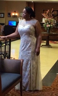 I haven't been able to share my dress yet because I've only ever used mobile so now I have to share my dress and I want to see yours!!!! In these pictures the dress is all pinned up for alterations and my straps aren't right so it looks a little off...