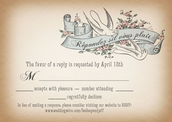 how should I word on my invitations that guest can rsvp via online (our website) or via mail (return card). I don't want it to sound to wordy.