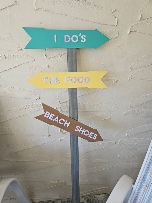 So I've been wanting those signs for beach wedding, but $89 - $150 on Etsy was a big "no" for me. I was at the Dollar Tree and saw white wooden arrows that said "reception", "cocktails" and something else. I grabbed them! ($3.75) Went to Lowe's for...