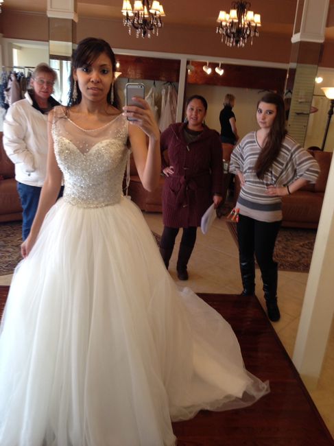While I was dress shopping, people kept telling me, "Oh well, I went in wanting this but came out with something different." Well, I went in knowing what I wanted, still tried other things on, but didn't get that feeling until I went into our third...