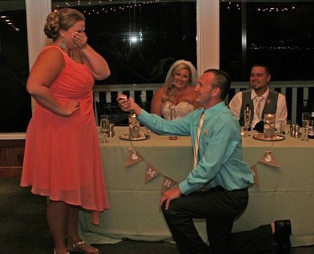 What do you all think about this bride and groom being upstaged at their own wedding? I mean... c'mon, people... they only get one day!!! Couldn't you just wait to propose?? I love the look on the bride's face! I know I wouldn't be happy!