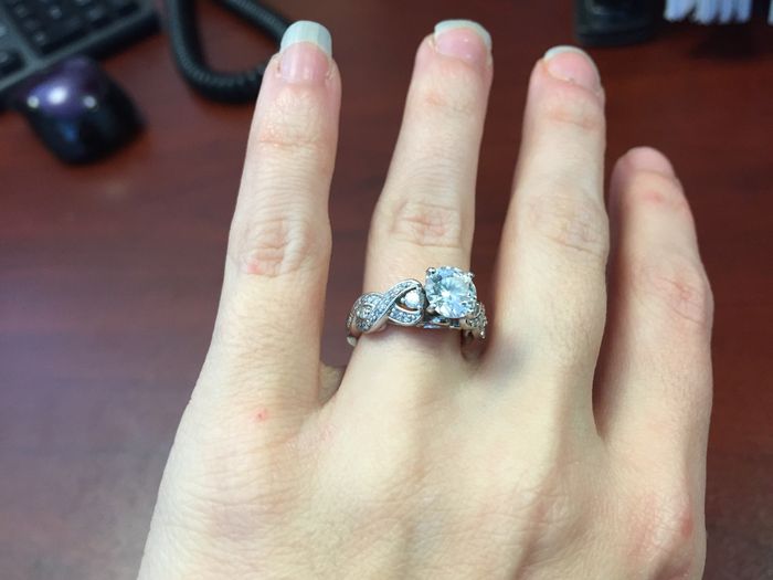 Well the initial excitement of getting engaged has gone (not from me but others!) So I don't get to show off my ring as much as I'd like anymore. I LOVE my ring, FH picked it out ALL by himself with not even any inspiration.. he did good!!!