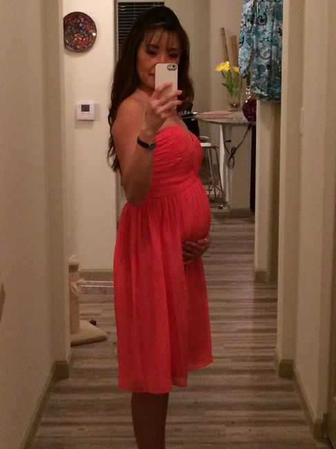 So 1 of my bridesmaids just called to tell me she just found out she's pregnant! I am super happy for her! She has been wanting to have a baby, but this was unexpected. Anyways she's concerned about her dress. She will be 6 months pregnant at my...