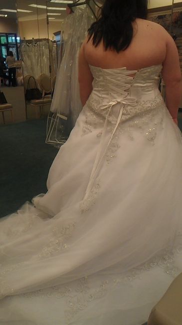 I put my dress on layaway at Davids Bridal in march. I payed it off a week ago and went to go get it. I put it on again to see it with the slip I was buying. I bought it knowing full well the consultant said she thought I needed a bigger size. I...
