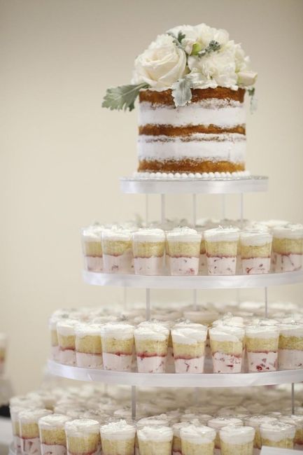 I need a little brain help here... I want a small naked cake 2 layers tops, pretty much just for show... & I want to have cupcakes/or something instead of a large cake for everyone.. I was wracking my brain on how to make them "match" or at least be...