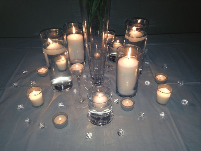 I have been thinking for awhile about what to do for our centerpieces and decided that I just wanted something elegant, simple, and romantic. So I finally got around to shopping and bought some supplies for a trial run. Yay! We are doing fresh...