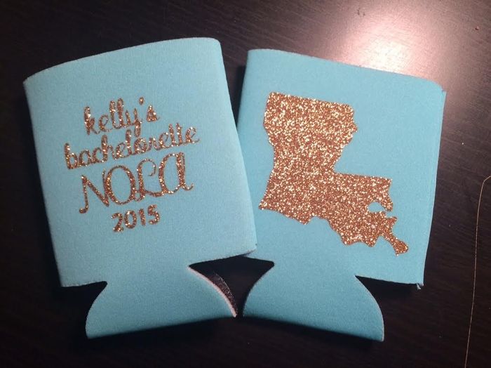 I couldn't justify spending $70-$90 on 7 koozies, but wanted to surprise my Bachelorette Party girls with something fun as a thank you for coming to NOLA with me in a few weeks. So I made my own koozies! $9 for 6 blank koozies (plus she threw in 5...
