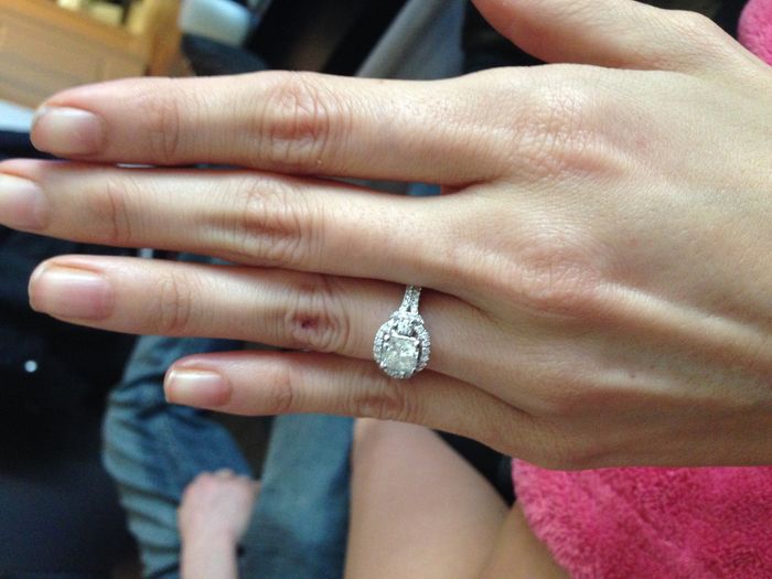 Well the initial excitement of getting engaged has gone (not from me but others!) So I don't get to show off my ring as much as I'd like anymore. I LOVE my ring, FH picked it out ALL by himself with not even any inspiration.. he did good!!!
