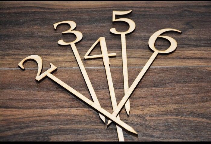 We are going to be putting our flowers in wine bottles for our centerpieces (4 different shape/size bottles per table). Our coordinator recommended these two options for table numbers. The numbers will be propped up in one of the bottles and spray...