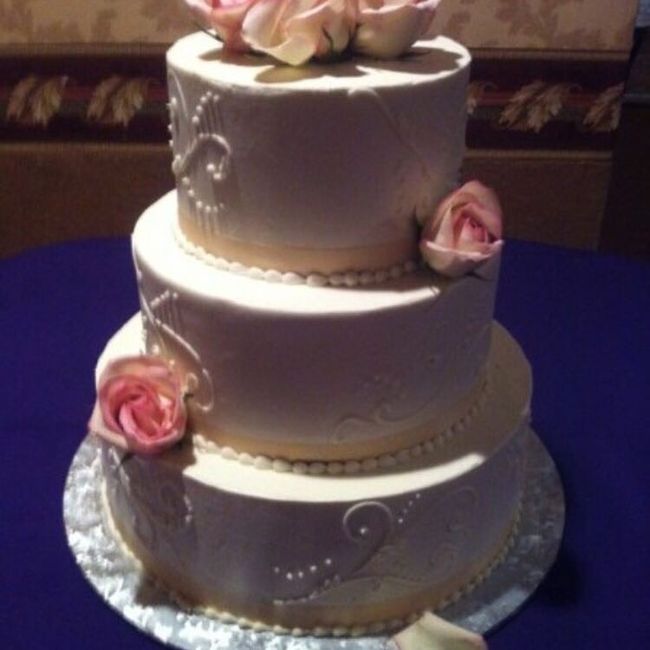Hey ladies! We're working on our wedding cake. Well. Picking out designs and what we're aiming for! Most likely something like this, smaller version with some cupcakes! What are your cake visions and what did you end up paying?!