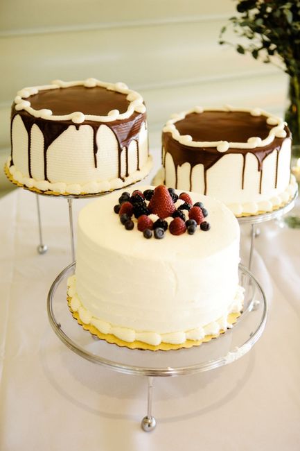 From the beginning, the cake was my least important item. Then FH said "You gotta have cake!" I think he meant dessert in general, not wedding cake because now he's on board with sheet cake. One one hand, cheap cake (sheet cake and a small round cake...