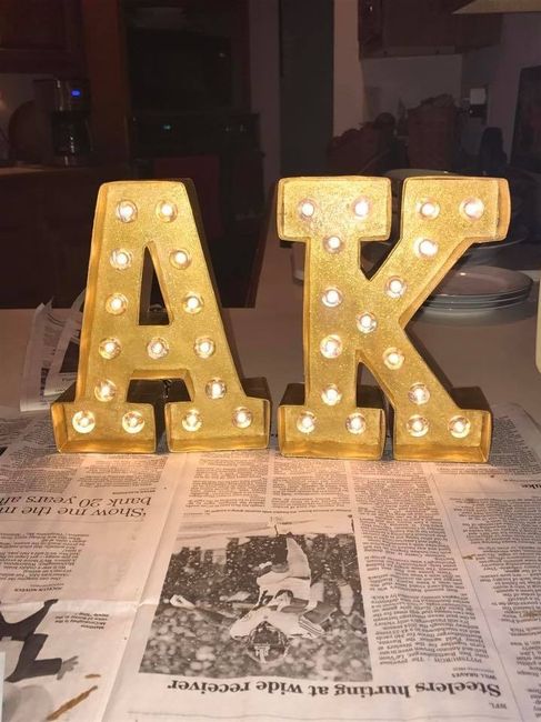 I just finished my first DIY wedding decoration today! Now I've got the crafting itch, and I need some inspiration! Show me what you've been working on or have already made! The top wood part of the "B" is going to be taken off, but here's my...
