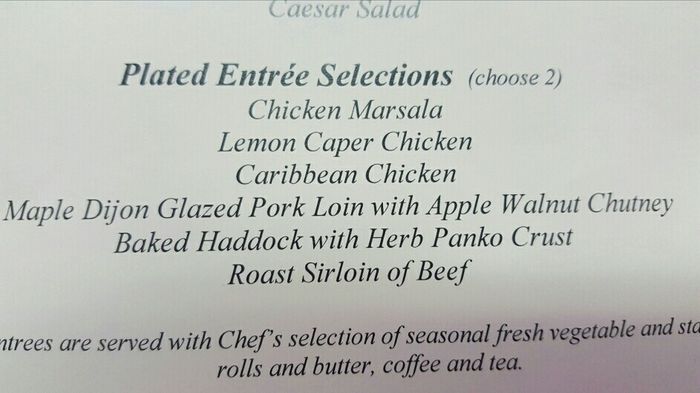 Ok these are my options. We are about 99% sure we are choosing the Haddock as one of the options because our date is a Friday during Lent, and we do have family that will probably be offended if they are forced to eat meat! So I need help picking our...