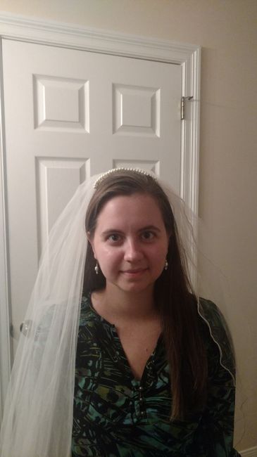 I decided a while ago that I wanted to wear my mom's veil, but didn't really understand that veils don't necessarily go with every dress. In addition to being attached via a crown of fake 80s flowers, it was pure white and my dress is a soft white...