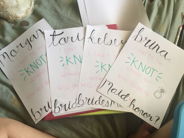 I finally decided how I'm asking my girls to be part of my wedding party! I made these cute notes that I'll be folding somehow to hold a personal note for each girl, and a DIY bracelet I'll be making that'll have a knot charm in the middle! It's my...