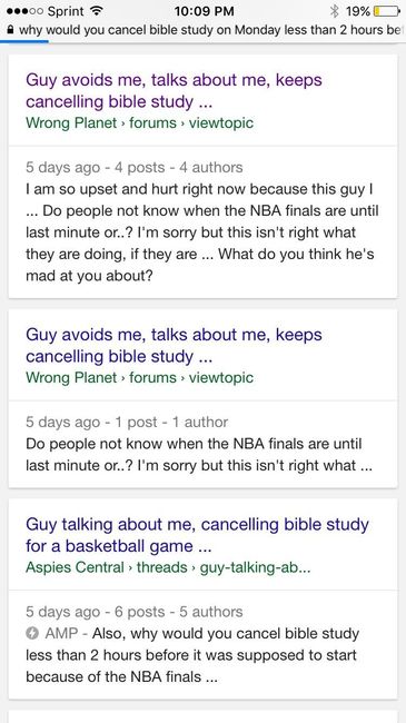 why would you cancel bible study on Monday less than 2 hours before it was supposed to start because of the NBA finals?? Do people not know when the NBA finals are until last minute or..? I'm sorry but this isn't right what they are doing, if they...