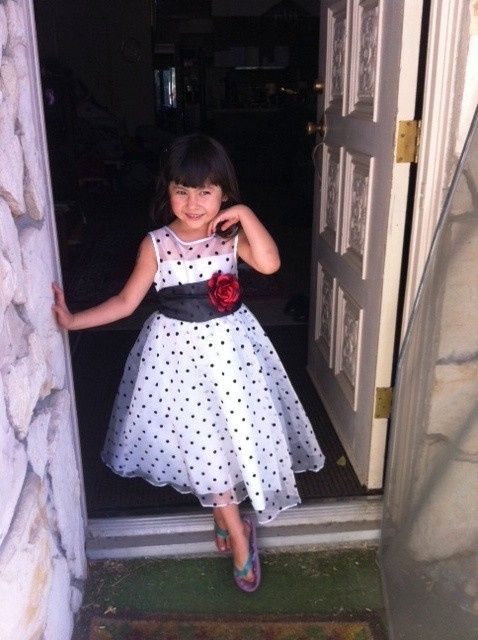 A preview of our Flower Girl! I went to take the dress to my BMs house and when the FG saw it she went running inside to try it on. She loves polka dots just like me which is super awesome. This is just her naturally posing. She's actually kind of a...