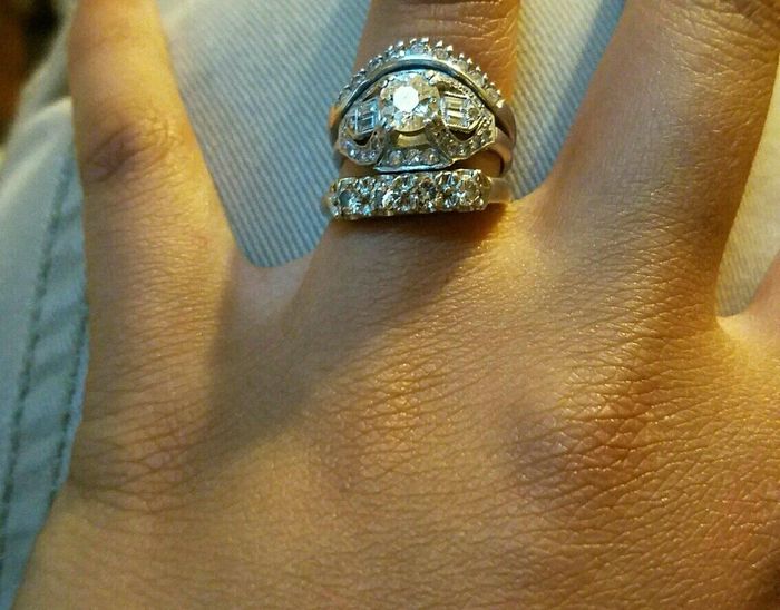 let's see your ring ladies! is anyone planning on doing 2 bands instead of one? if you're doing 2 are you wanting them to be identical? I'll post a pic of my e-ring and my band together!