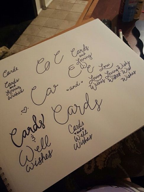 Bought some cute chalkboards on sale at michaels and painted them to match my colors, anyway- they are tall vertical so just "cards" wont look right. Anyone think of something other than "Cards and Well Wishes"? And the 2 Ws just dont look right to...
