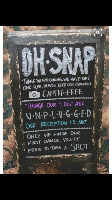 How many of you are having an unplugged wedding ceremony? We are dropping off our chalk boards tomorrow morning with the calligrapher and I need to decide if we are having a unplugged ceremony so that she can put it on the sign... Thoughts??