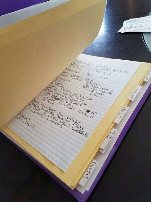 What is everyone doing for their planner? I was gonna buy the expensive book from Hobby Lobby, my sister said no, dont waste your money. So I made my own! I have tabs that has things I will need before, during, and after the wedding. I have my venue...