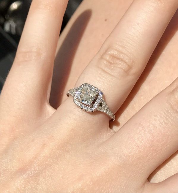I am in love with my engagement ring! I was totally not expecting such a beautiful ring. A White Sapphire round stone and black diamonds along all sides. What do your engagement rings look, ladies?