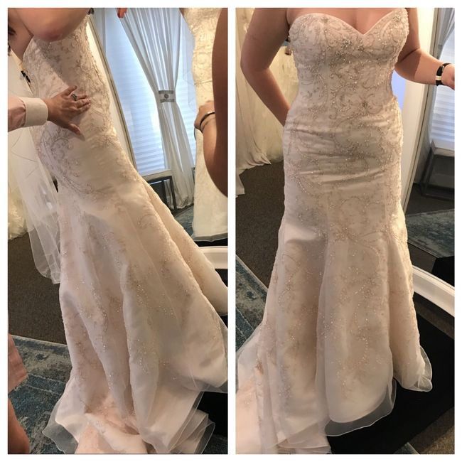I've been dying to share my dress on here, soooo here it is!!!! The first picture is the dress in ivory. The first place I tried it on I fell in love and my mom actually cried. They priced us $1500 My mom found it at another boutique, we got it off...