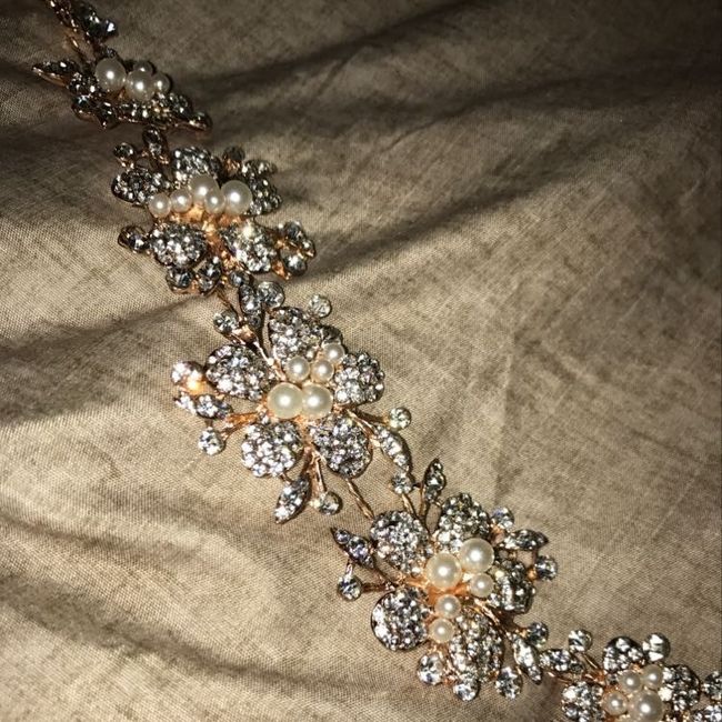 I found this beautiful headpiece at charming Charlie's for $14. It shines so beautifully and is rose gold and I feel (and hope) it will match my dress perfectly. When I do the hair trial I am going to try on my dress to see how it looks! Question to...