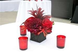 We're having our lunch reception at a Cajun restaurant. Since it's a morning ceremony, I won't have to time to go to the restaurant to set-up decorations. I need some easy and simple centerpieces using red roses and black feathers. Any ideas? Advice?...