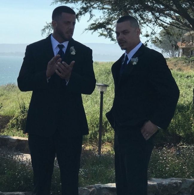Hi all! So we just went looking for the men's outfits today and I quickly found out that it is more complicated than I imagined! Lots of different pieces to think out. This is our plan for now. We are having a beach wedding so the gray swatch is...