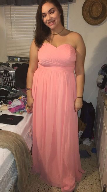 This is my little sister in her bridesmaids dress! We got it off of Azazie. I really like the style but the color is suppose to be coral and looks more pink to me.i got fabric swatches from The same sight before ordering the dress and it looked...