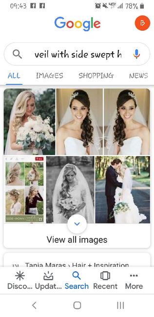 I have my hair and makeup trial on Sunday. My FH doesn’t like updos. I was originally going to do half up/half down but the back of my dress is so pretty and I don’t want to cover it up. I’ve decided to try a loosely-gathered, curly, side-swept pony...